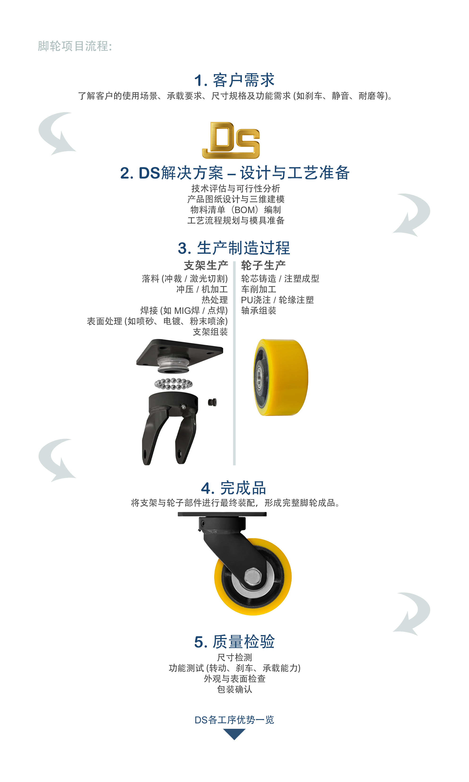 大世脚轮的优势:从试生产到批量生产的高效过渡,拥有稳定的生产线和工艺控制系统。